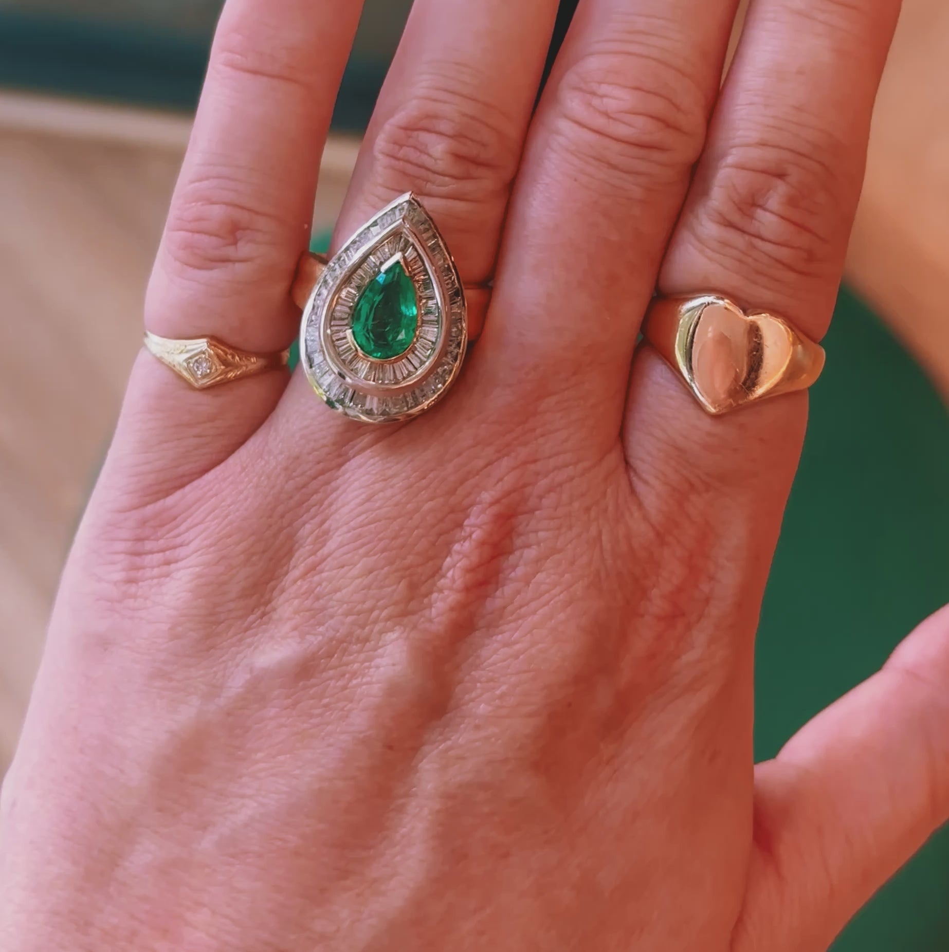 18ct gold opal, emerald and old cut diamond ring from 1902