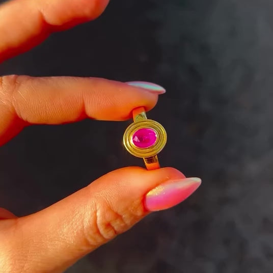 14ct gold pink sapphire bezel set ring