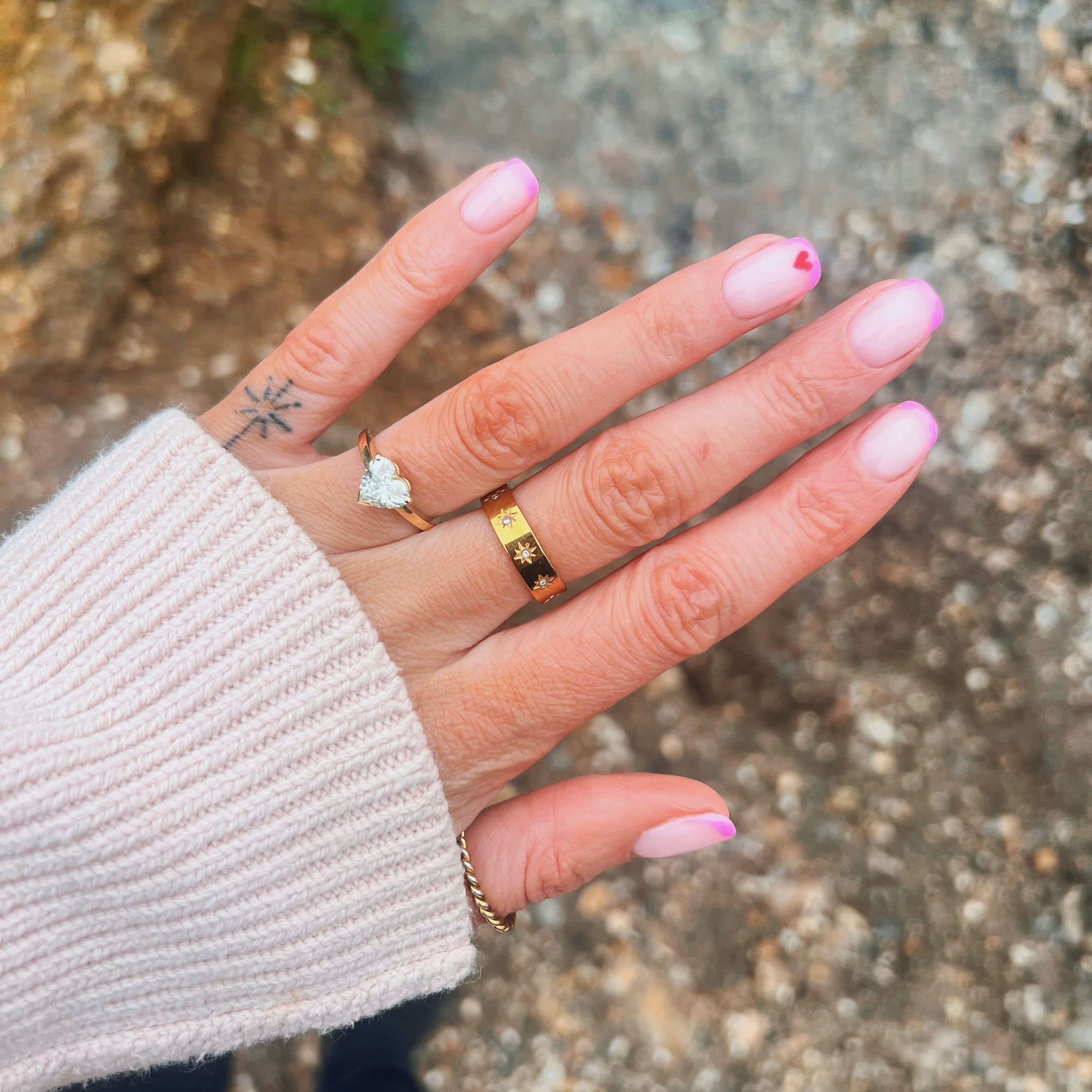It looks amazing styled with her other pieces and tattoos, and of course the prettiest pink, heart manicure to match 💅🏼💍✨