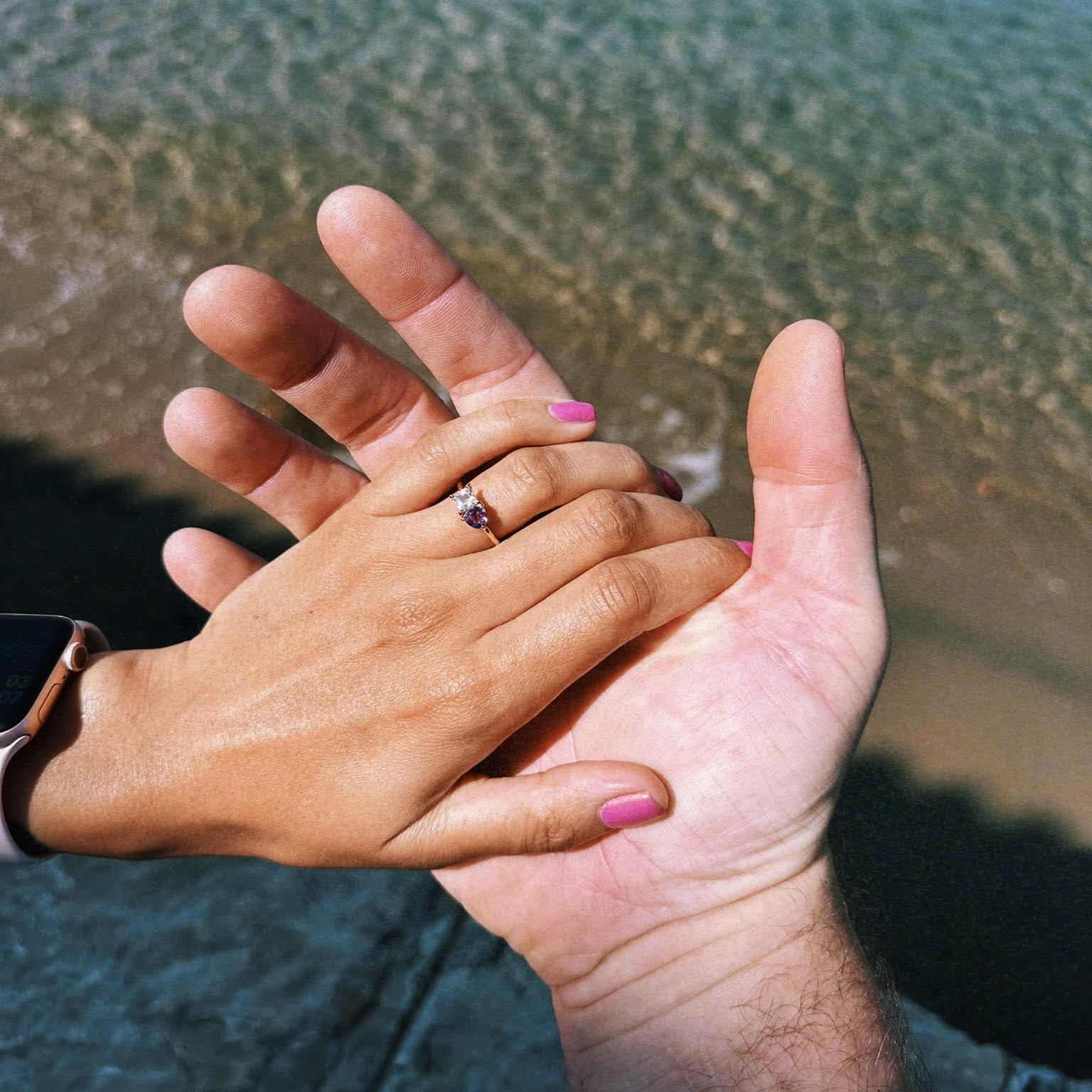 Together, we decided to make our own version for her. We sourced stones and created a new ring. This time it included an Amethyst, her birthstone. When he gifted it to her she was absolutely in love with it and the lengths that he had gone to to create her perfect piece.