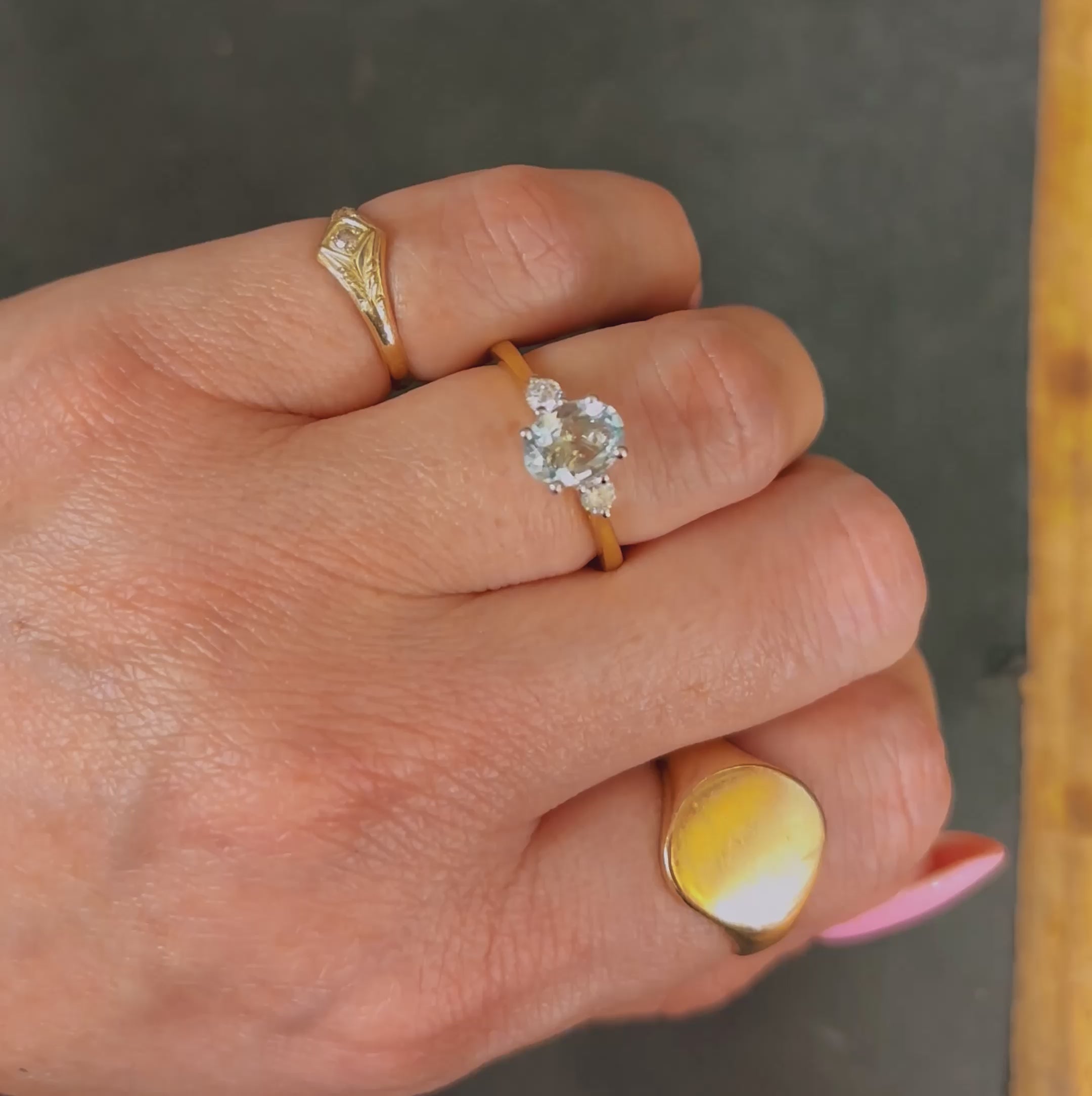 18ct gold 1.08ct aquamarine and diamond three stone ring (made to order)