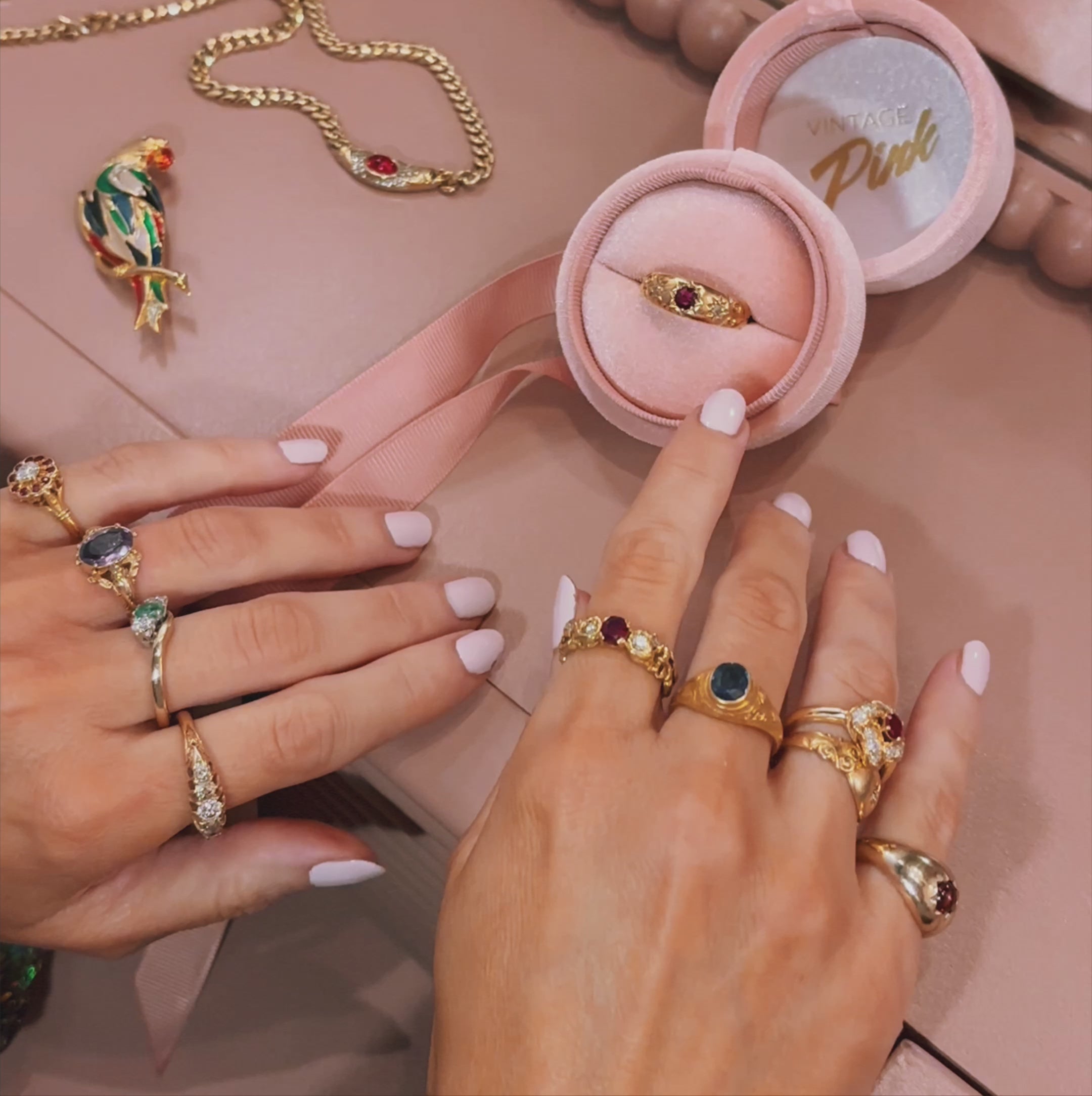 Your ring will be sent to you to check that you love it and would like to keep it. The customer will then send it back to Vintage Pink for resizing. The customer will pay two sets of postage costs.