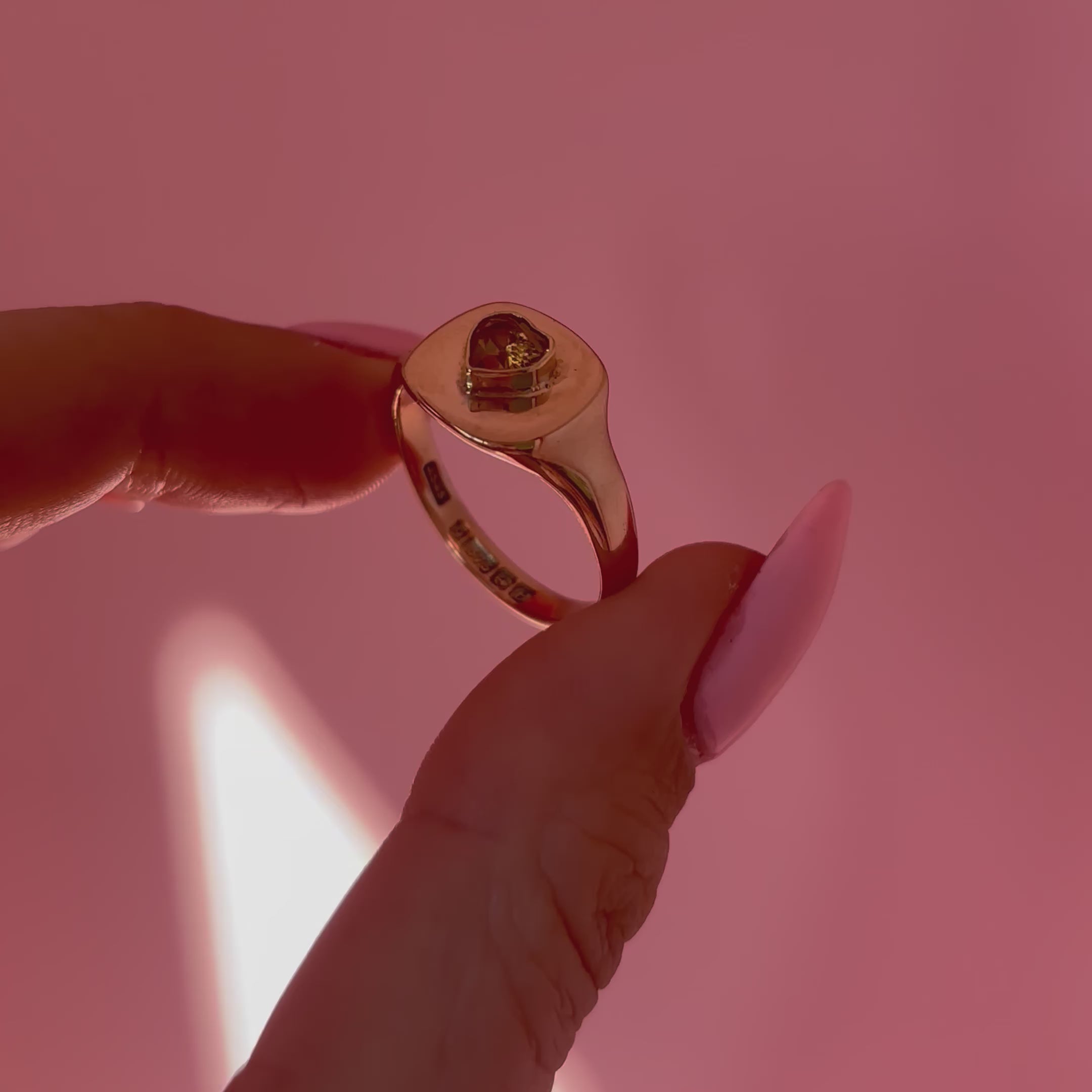 9ct gold heart shaped citrine signet ring from 1983