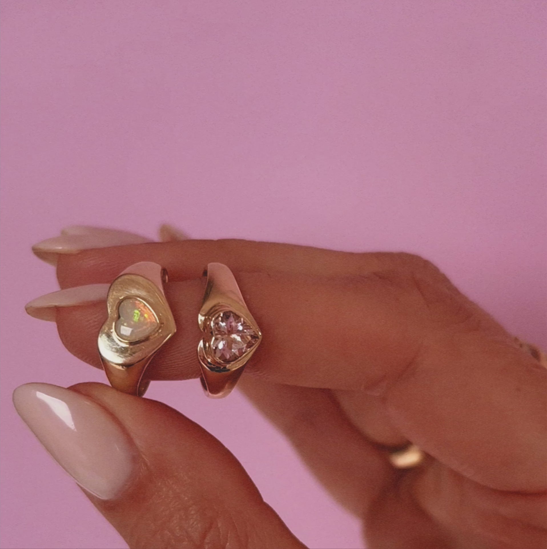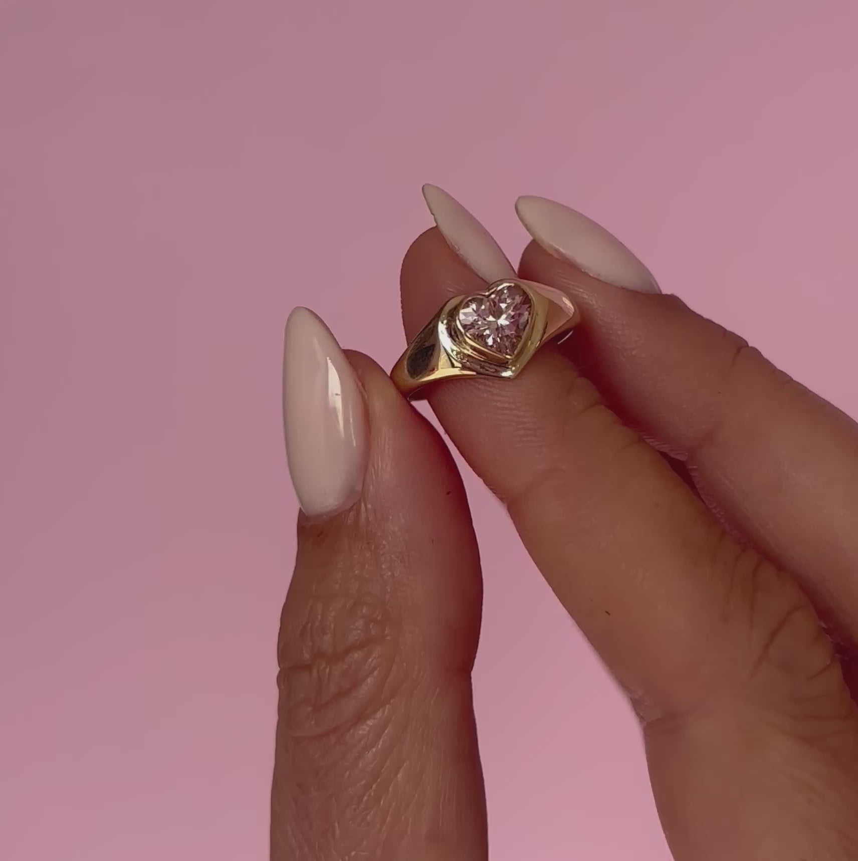 9ct gold heart-shaped morganite vintage signet ring (made to order)