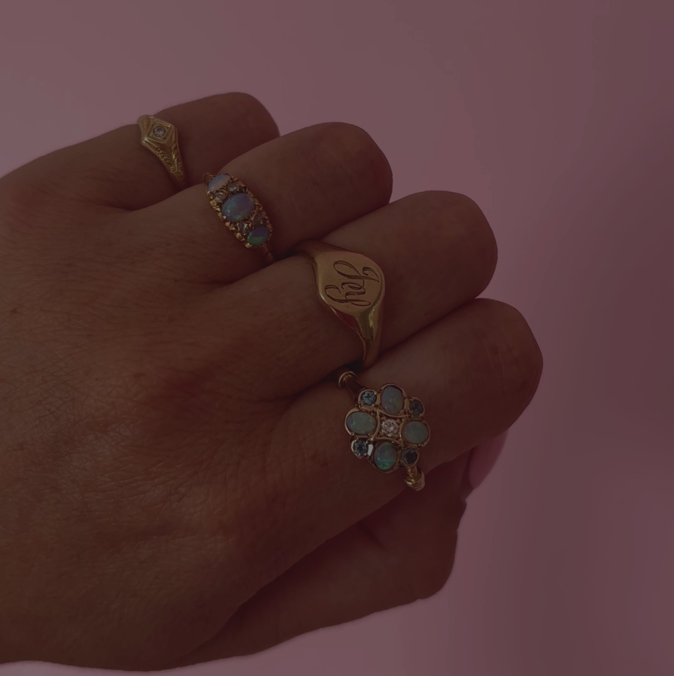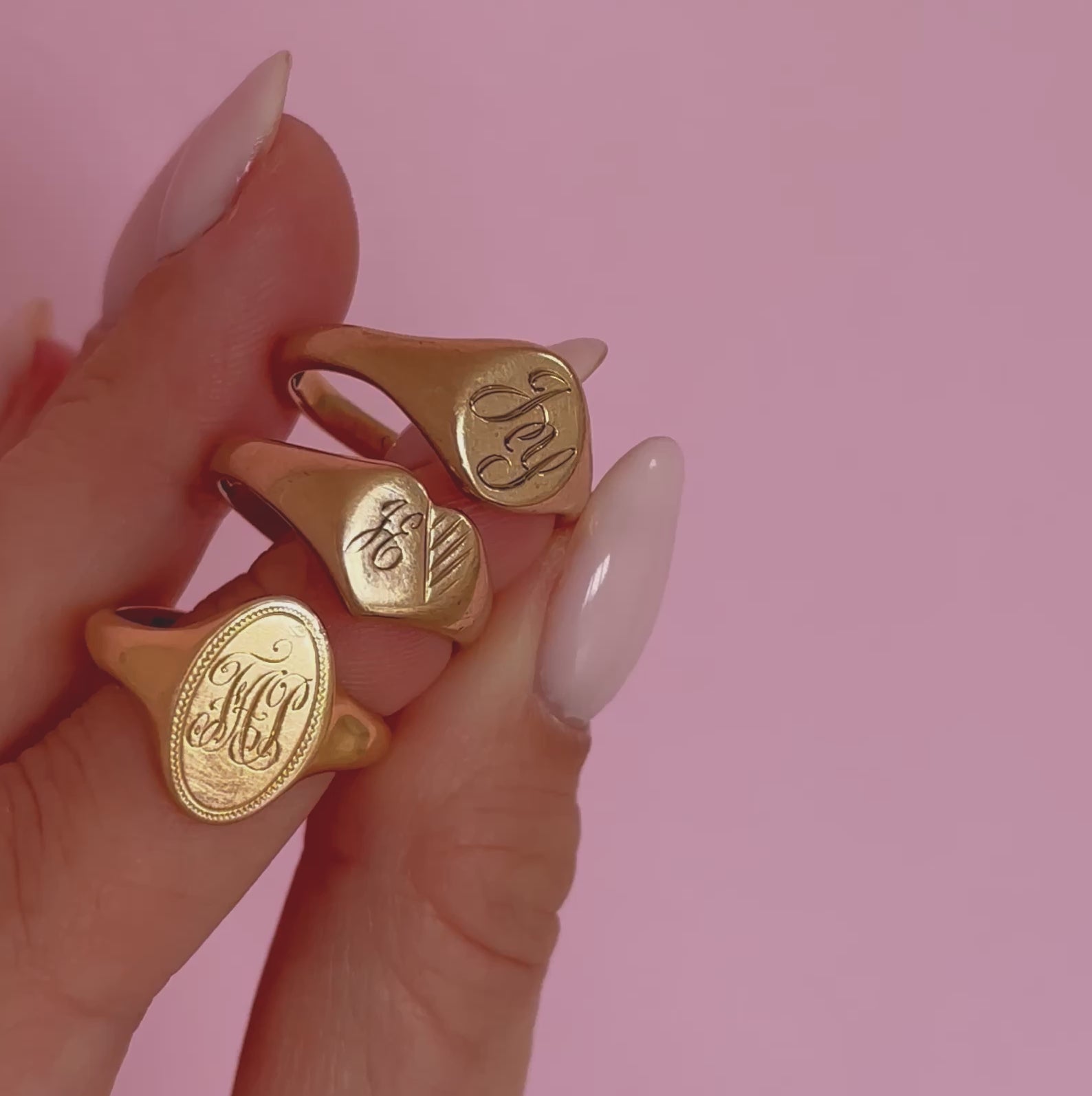 - We sourced a vintage, signet ring from 1989 and engraved the face of the ring.