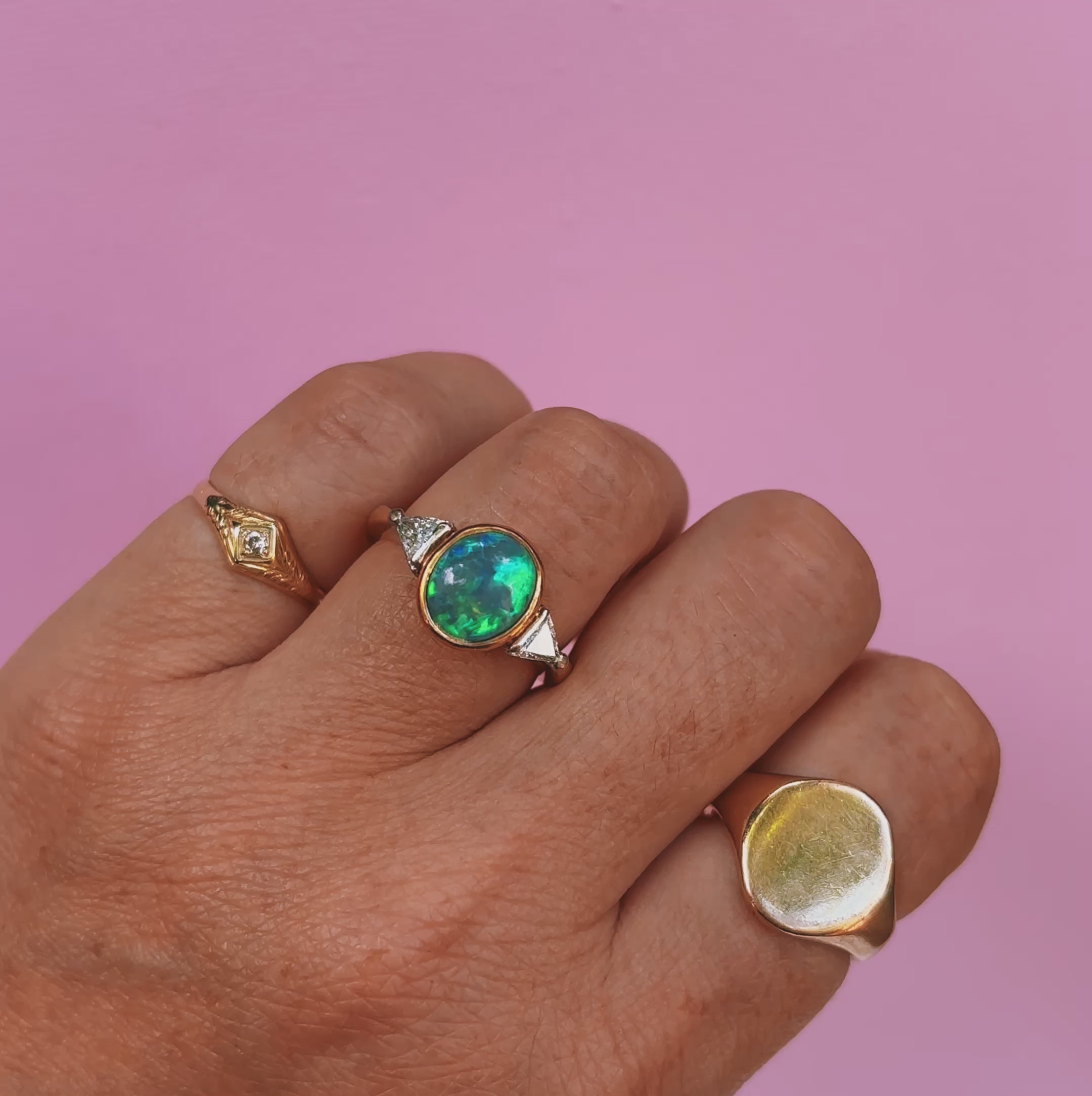 My new fiancée bought me the most amazing opal ring from your website (we’d both admired it separately and then he realised it was made in my birth year, 1993, in Sheffield where my family are from! So perfect!)