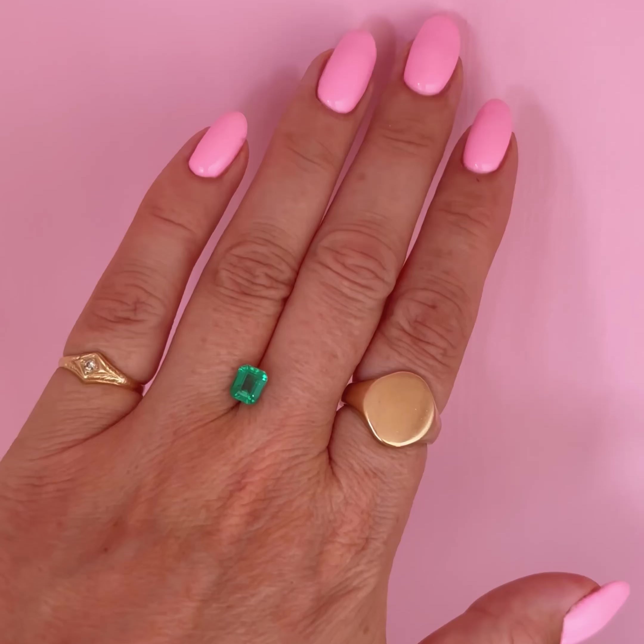 We have the Emerald stone shown in the images and videos (the loose stone). If you’d like to make it into a ring, please email us. Some ideas for designs are shown.