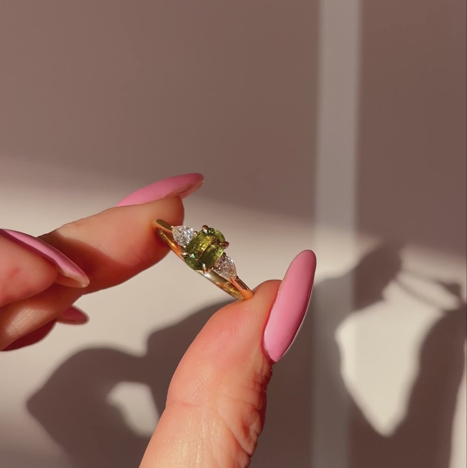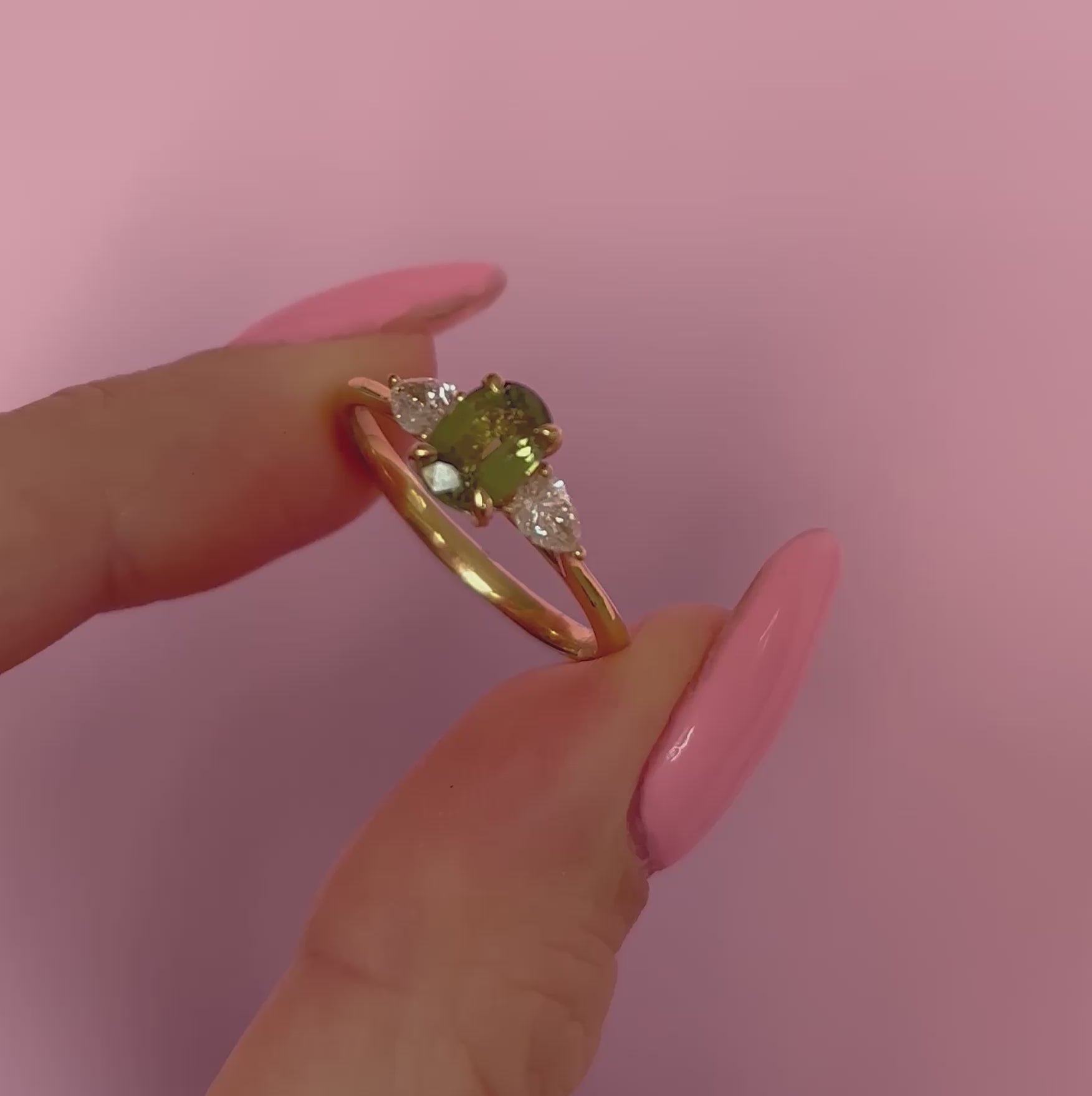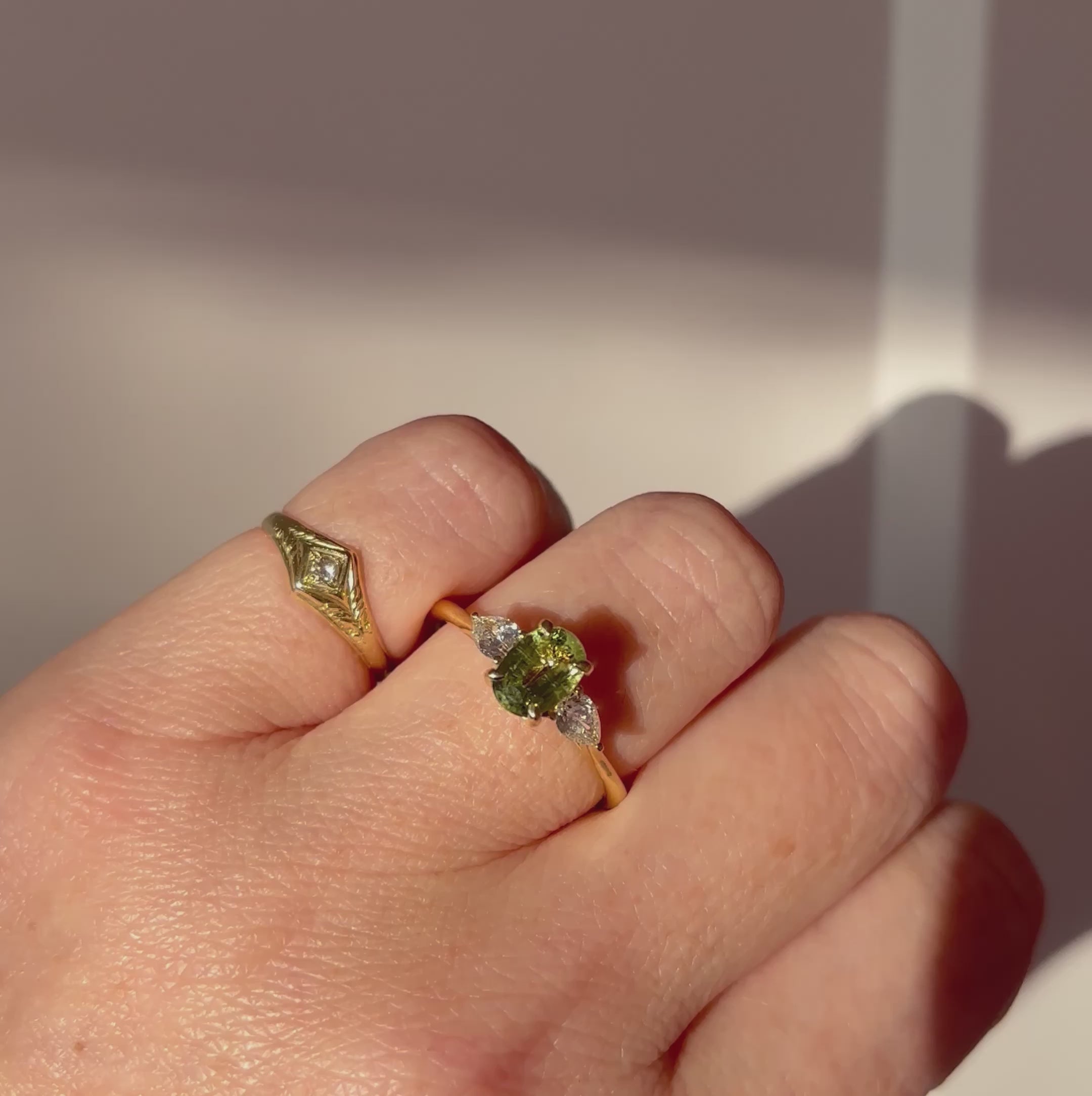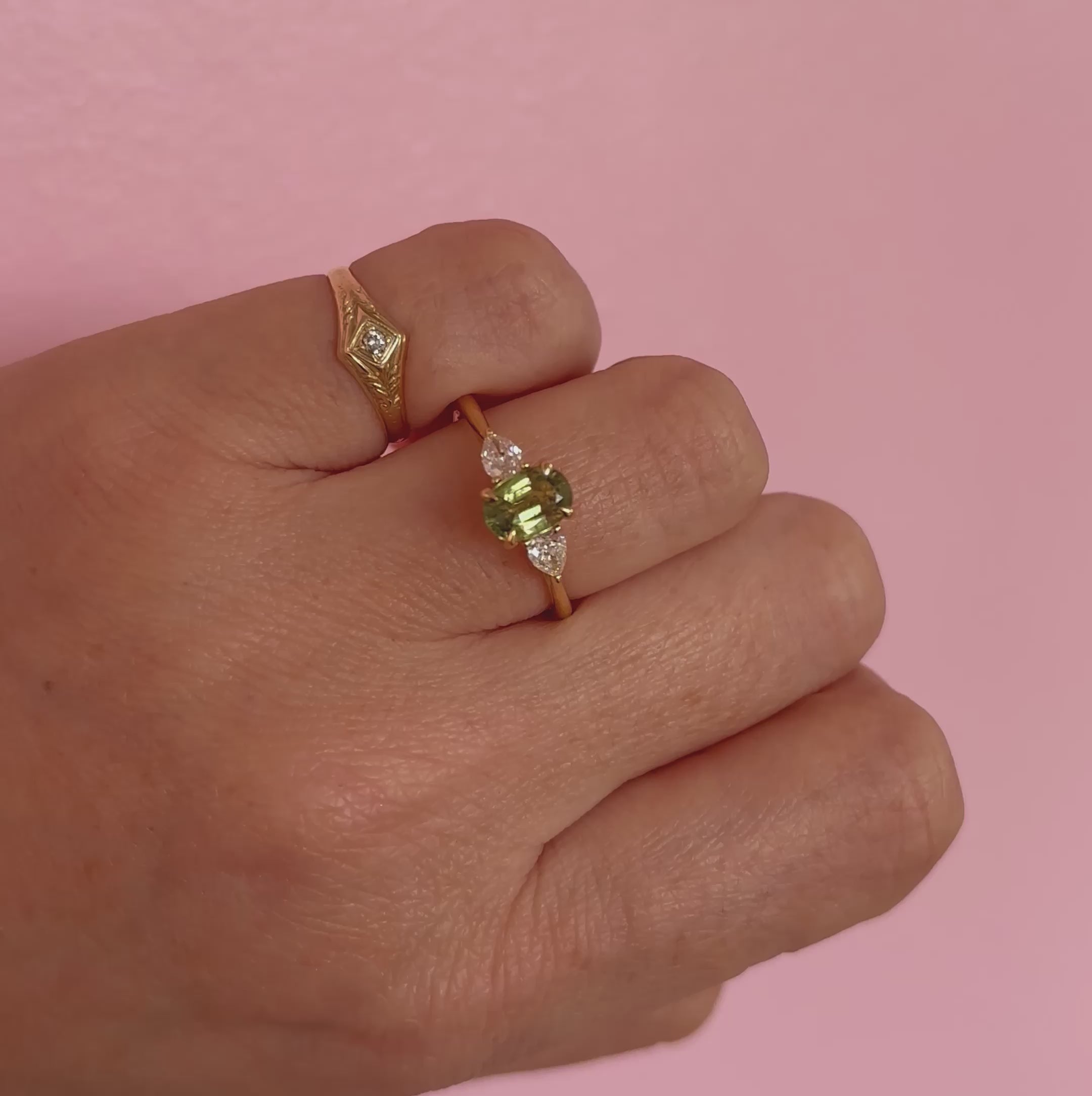 18ct gold 1.26ct green sapphire and diamond three stone ring (made to order)