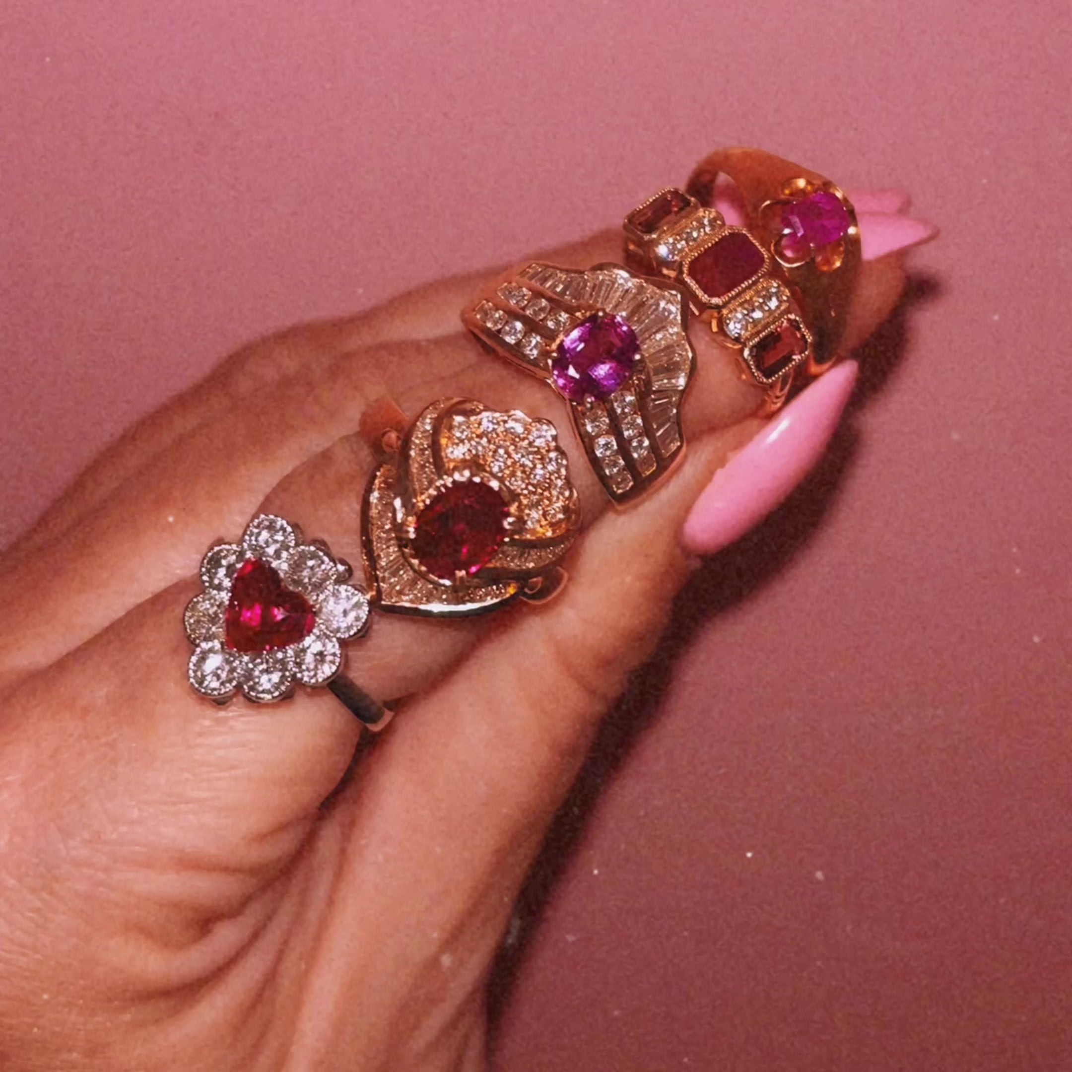 Platinum heart-shaped ruby and diamond vintage earring conversion ring