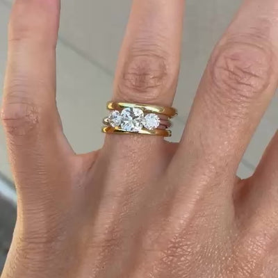 18ct gold 1.01ct cushion cut diamond trilogy chunky ring