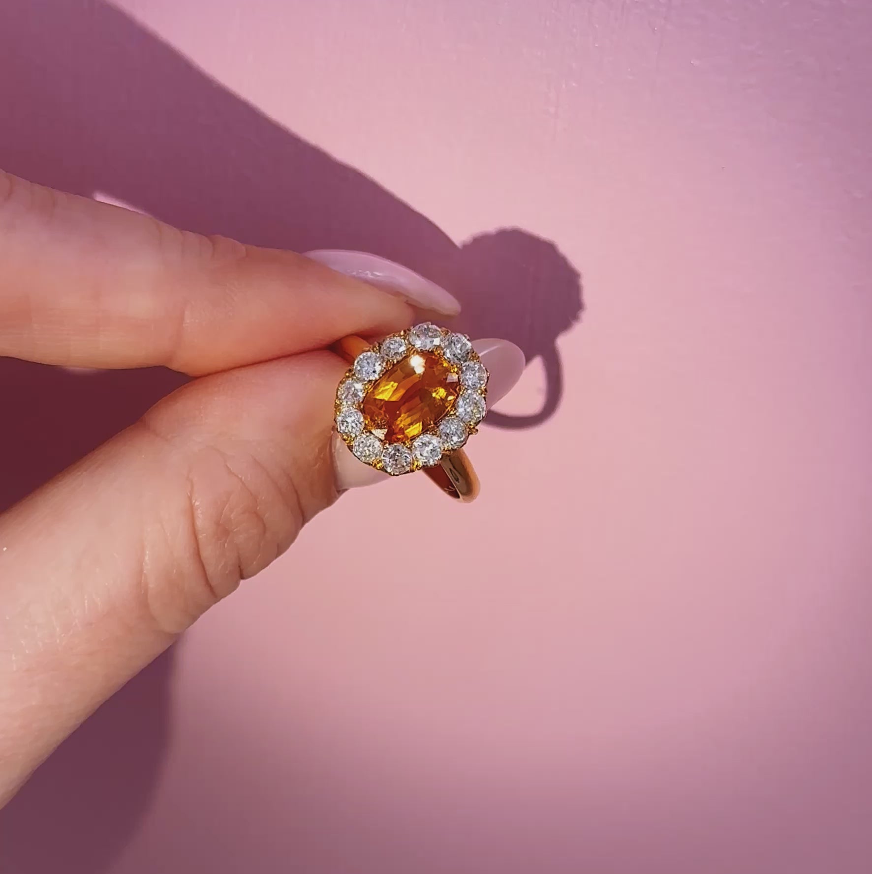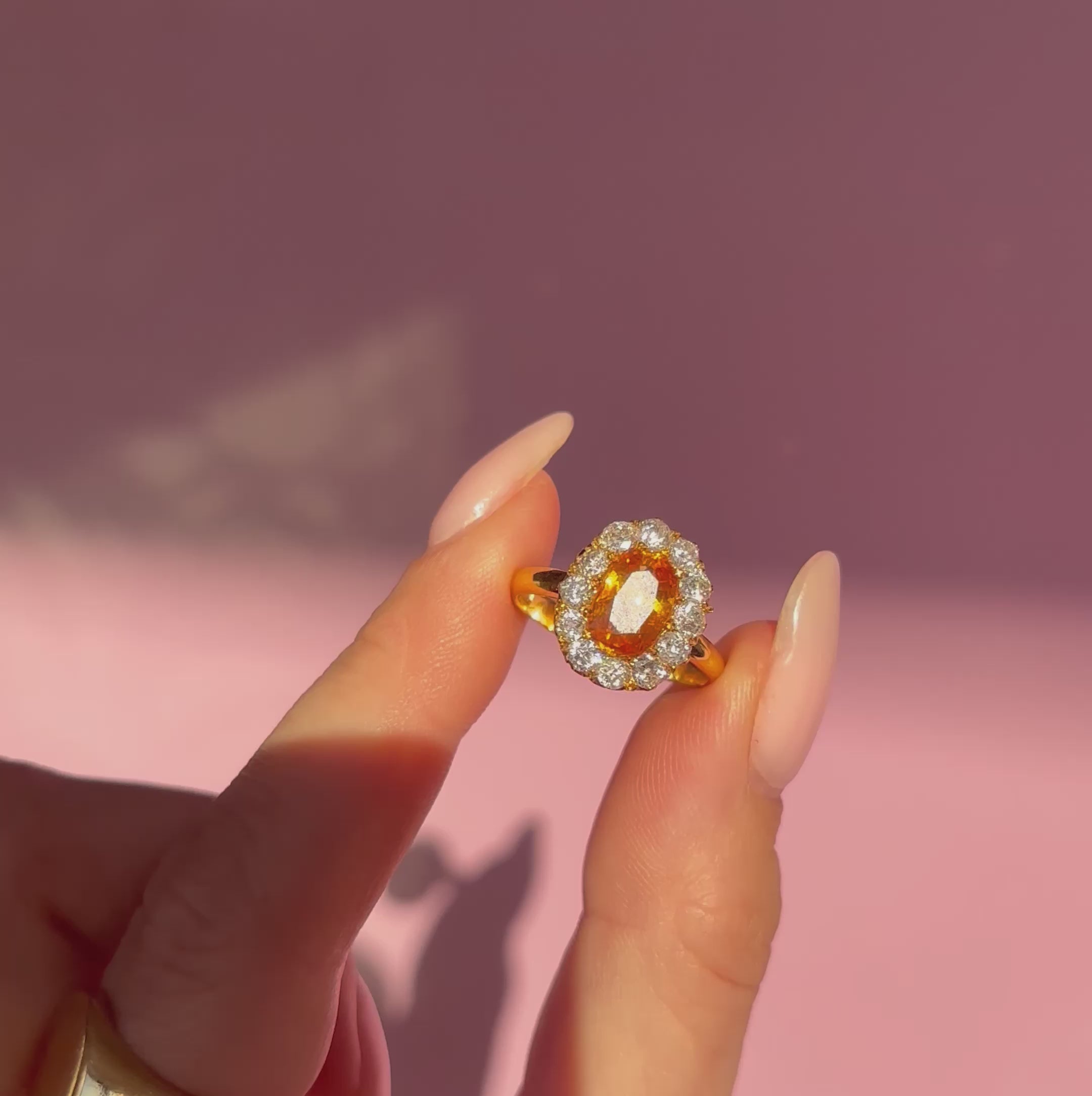 18ct gold orange sapphire and diamond cluster ring