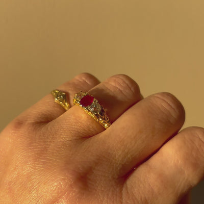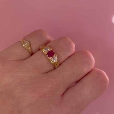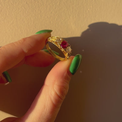 18ct gold Victorian 0.60ct ruby and diamond three stone ring