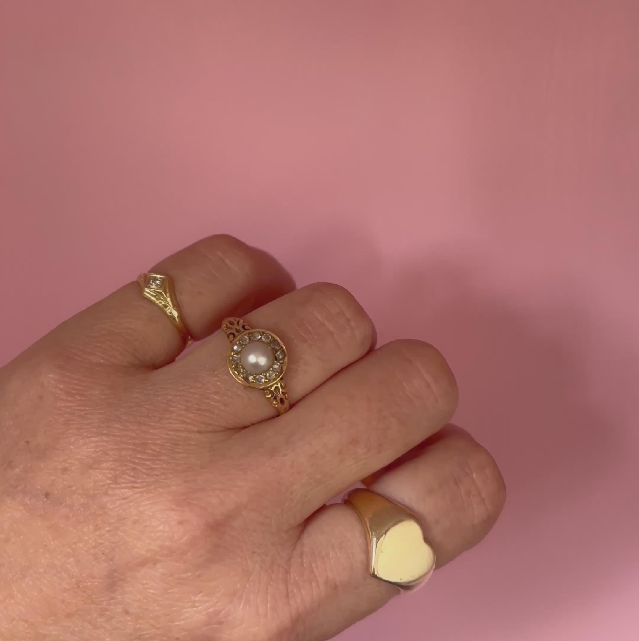14ct gold Victorian pearl and rose cut diamond ring