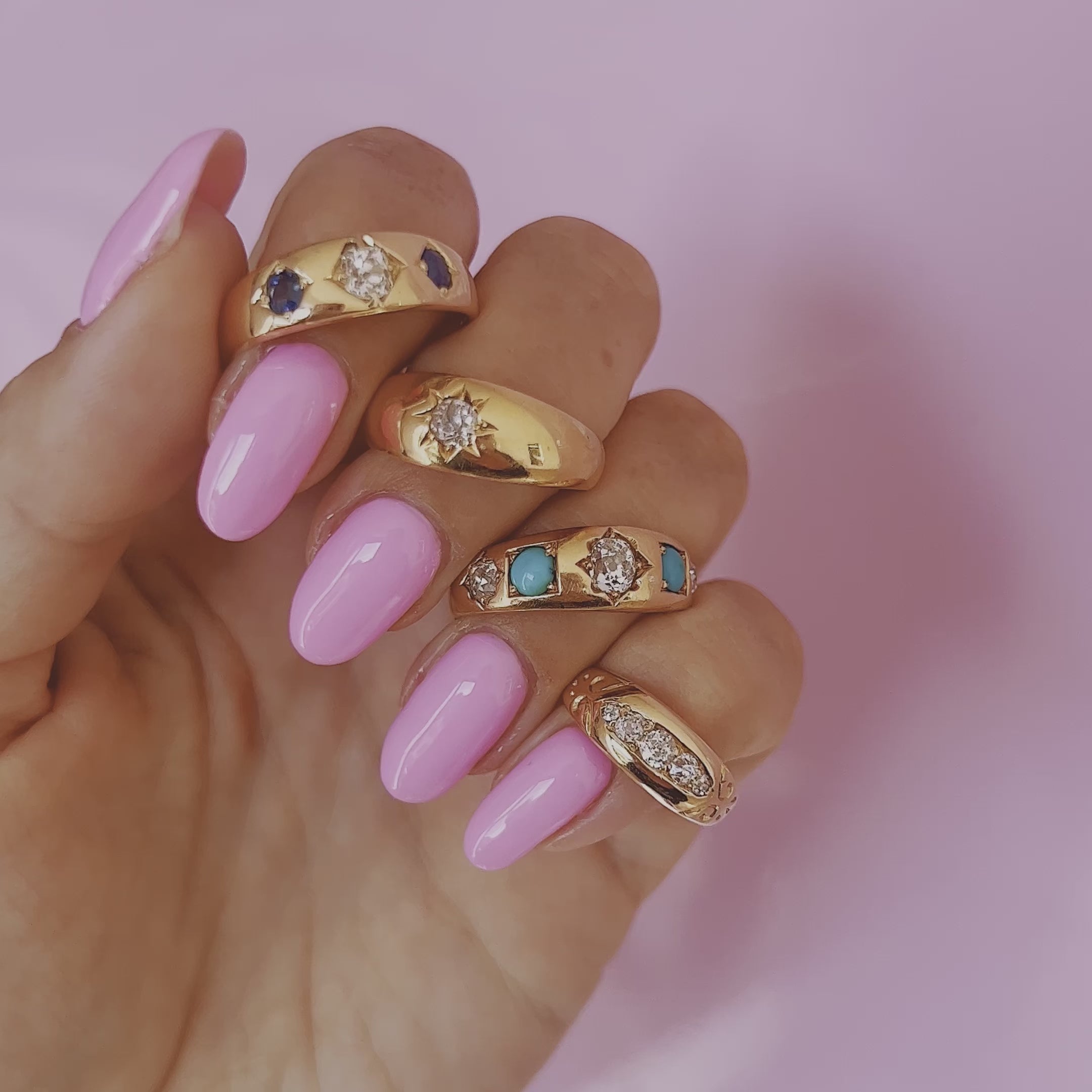 ‘Gypsy’ rings became popular in the Victorian period and were actually first worn by men; favoured because of their robust structure.
