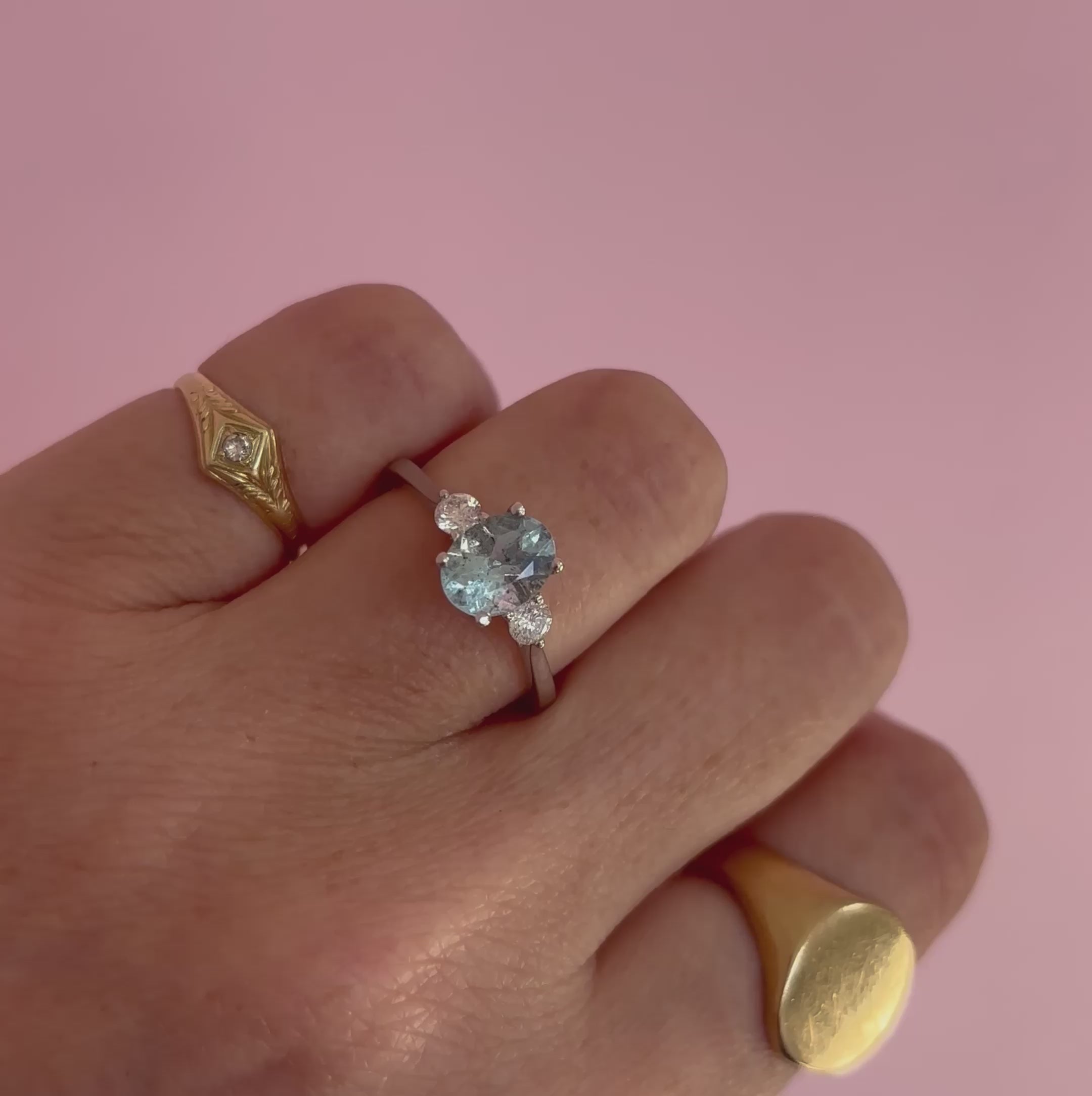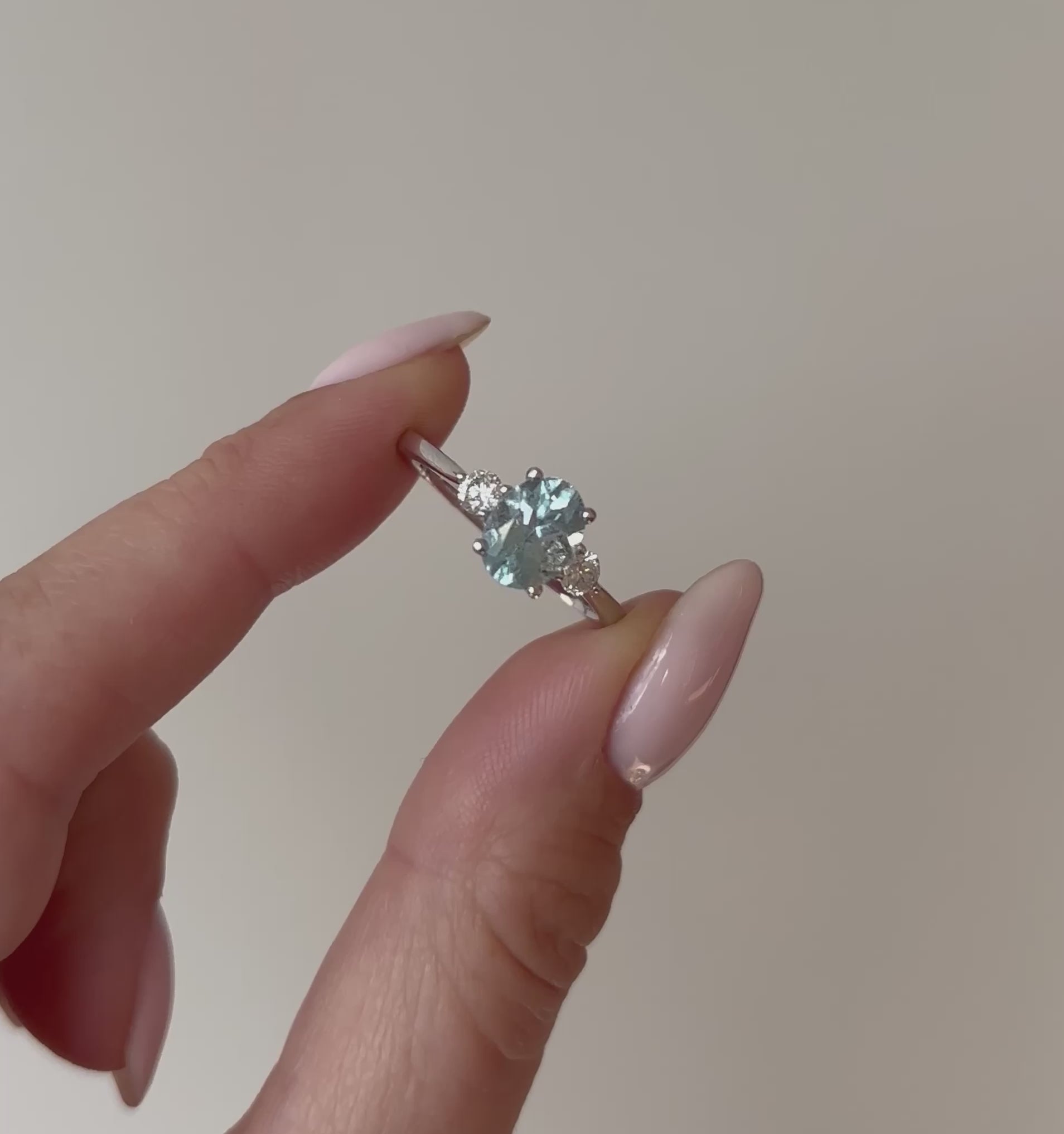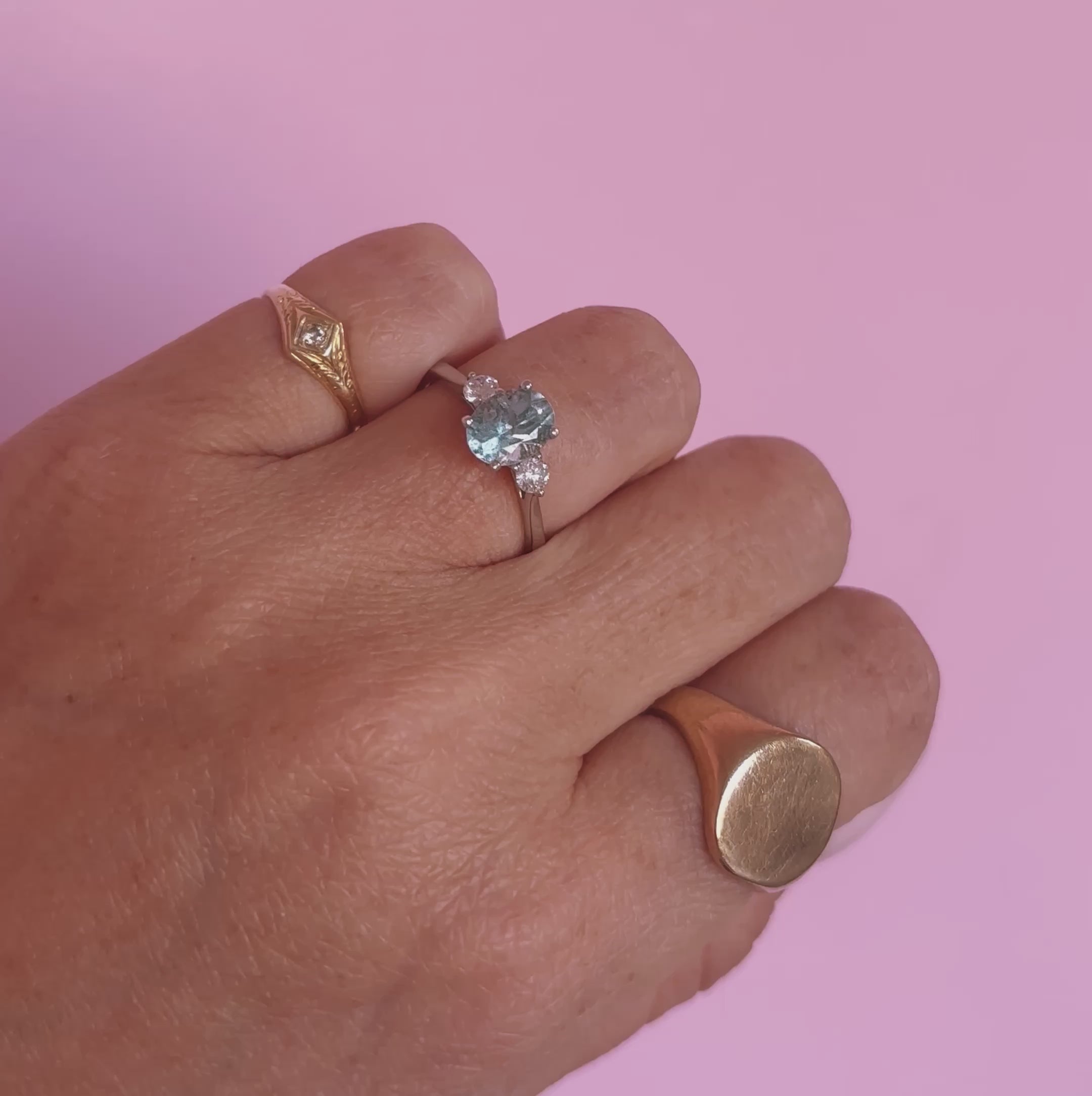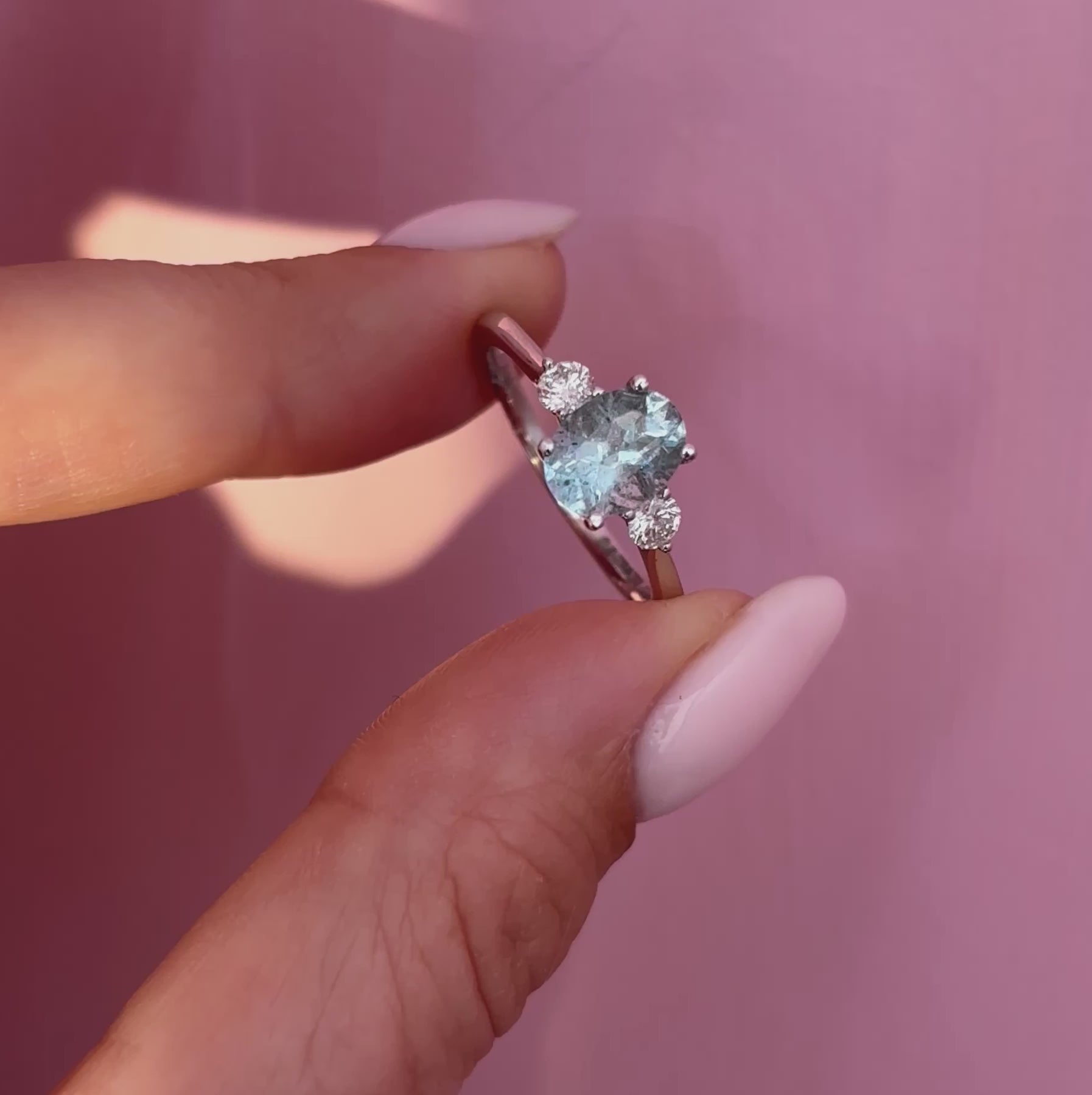 Platinum 1.08ct aquamarine and diamond three stone ring (made to order)
